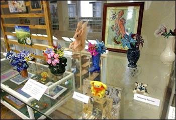 Представленные экспонаты декоративно-прикладного искусства были выполнены в большей мере из натуральных материалов – картона, каучука, хвороста и т.д. Выставленные работы в технике бисероплетения и валяния также привлекали внимание собравшихся.