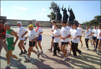 Забег, с остановками в памятных местах города, по протяженности составил порядка 35 километров.