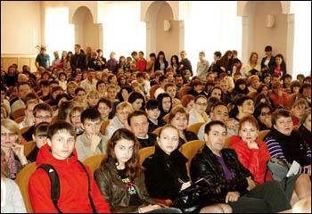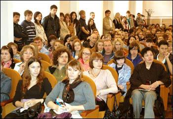 Перед школьниками и родителями выступили доценты ВГУ – эксперты предметных комиссий Ю.В. Бондаренко Л.Г. Кузьмина, М.В. Панова.