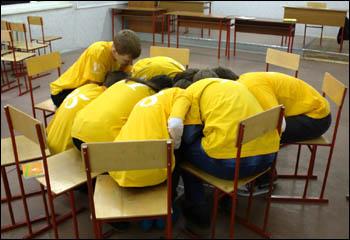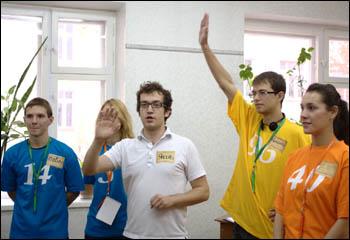 Во 2-й тур конкурса прошли студенты, получившие максимальный балл в первом туре, который состоялся вчера. Волей организаторов облачённые в разноцветные футболки, ребята узнали, что сегодня от них потребуется умение нестандартно мыслить, работать в команде, а также доносить свои идеи до окружающих.