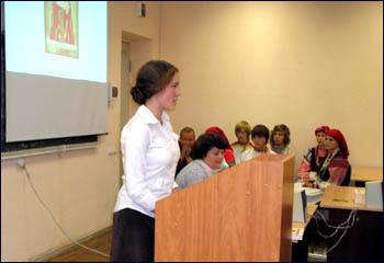 С особым интересом восприняли слушатели доклад студентки 2 курса филфака А. Артеменко о сходстве и различиях жития и вариантов духовных стихов о великомученице Варваре.