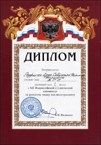 Абсолютным победителем Олимпиады среди студентов гуманитарного направления, занявшим I место, стал студент из ВГУ Родригес Дуке Себастьян Фелипе (Колумбия). Подготовленные им презентация и монолог были признаны лучшими по многим параметрам, а его умение участвовать в дискуссии, общая эрудиция и артистизм покорили строгое жюри РУДН.