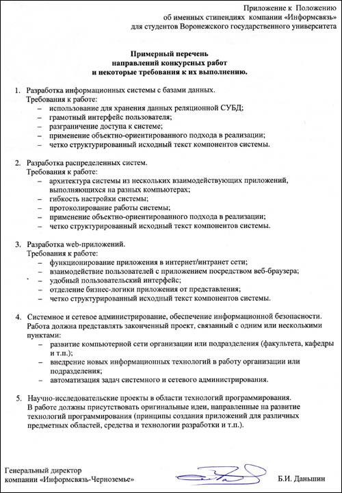 Cостоялась встреча ректора ВГУ Дмитрия Ендовицкого и генерального директора компании «Информсвязь-Черноземье» Бориса Даньшина, на которой было подписано Положение об именных стипендиях компании «Информсвязь» для студентов Воронежского государственного университета.