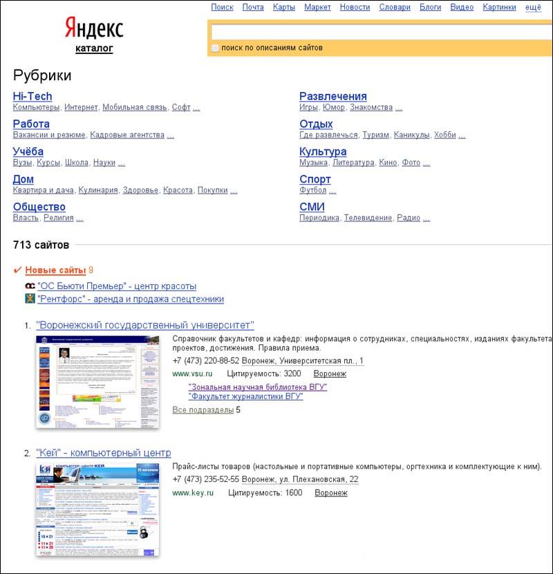 Согласно статистике поисковой машины «Яндекс», сайт Воронежского государственного университета является наиболее цитируемым среди сайтов Воронежской области – его индекс равен 3200.
