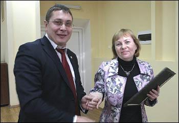 представитель Департамента образования, науки и молодежной политики Воронежской области Антон Марин и ректор ВГУИТ Евгений Чертов.