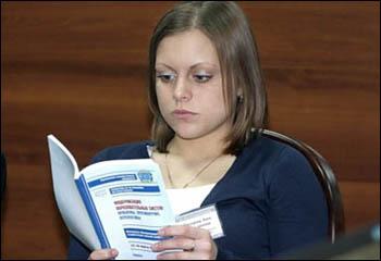 Участница конференции Анна Прозорова знакомится с содержанием сборника