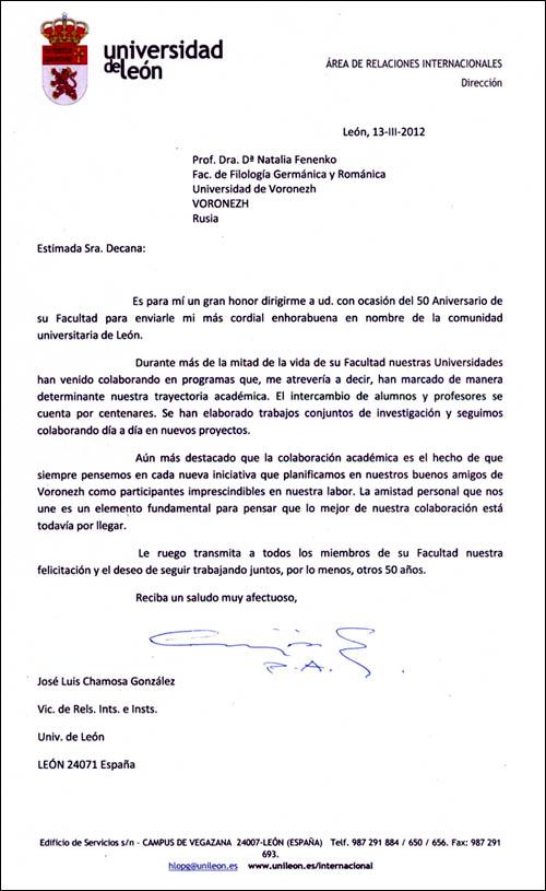 Факультет романо-германской филологии отметил своё 50-летие. В торжественном заседании Ученого совета факультета, состоявшемся 19 марта 2012 года, приняли участие проректор ВГУ по стратегическому развитию и интеграции, профессор Елена Чупандина, проректор ВГУ по науке, профессор Василий Попов, проректор ВГУ по экономике и международному сотрудничеству, профессор Олег Беленов, почетный доктор ВГУ, директор департамента по международным связям университета г.Леон (Испания) Эрменехильдо Лопес Гонсалес, а также ветераны факультета.