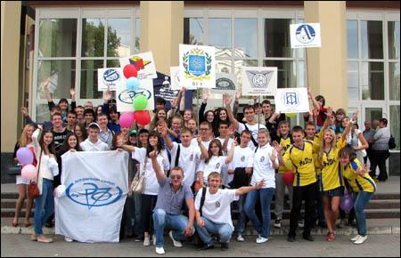 Скандируя «кричалки» своих вузов, участники шествия прошли по проспекту Революции до Адмиралтейской площади, где состоялась выставка арт-объектов учебных заведений.