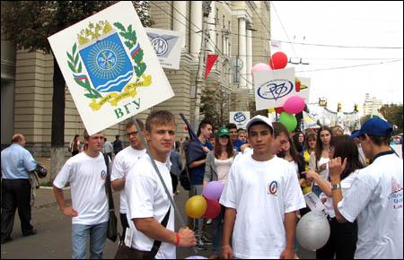15 сентября, в рамках мероприятий посвящённых празднованию Дня города в Воронеже состоялось традиционное шествие студентов вузов города, возглавляемое студентами ВГУ.