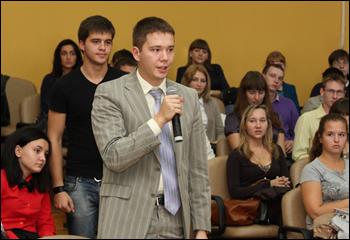 Открыв лабораторию, гости проследовали в актовый зал, где все желающие смогли пообщаться с представителями компании T-Systems, задать вопросы, узнать об обучении в центре. Напомним, что компания T-Systems предлагает студентам старших курсов нашего университета продолжить обучение в образовательном центре по 4 направлениям: SAP (подготовка специалистов в области автоматических систем управления предприятиями), Java (разработка программа обеспечения на Java), Test (тестирование программного обеспечения) и ServiceDesk (поддержка информационных систем). Помимо теоретических и практических занятий, в программу обучения входят мастер-классы, бизнес-игры, конференции с российскими и европейскими специалистами.