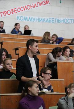 На факультете журналистики ВГУ состоялась Всероссийская научно-практическая конференция аспирантов и студентов «Проблемы массовой коммуникации: новые подходы». В ней приняли участие около 100 человек, в том числе 40 гостей из Москвы, Казани, Волгограда, Нижнего Новгорода, Ставрополя, Рязани, Липецка, Белгорода и Тамбова. На пленарном заседании прозвучали доклады аспирантки ВГУ Т. Осенковой (Масс-медиа стран Латинской Америки в 2012 году), студентки 4 курса ВГУ В. Бобровой (Опыт создания учебного специализированного издания (на примере журнала «FOTУМ» факультета журналистики ВГУ), студентки 5 курса ВГУ А. Рясновой (Онлайн PR-инструменты в практике Управления пресс-службы и информации Министерства обороны РФ), студентки 5 курса Московского государственного университета Н. Верзилиной (Краудсорсинг как модель массовой коммуникации), студентки 4 курса Тольяттинского университета А. Астапенко (Специфика гонзо-журналистики в русскоязычных глянцевых журналах (на примере публикаций «Cosmopolitan» (Россия)).
