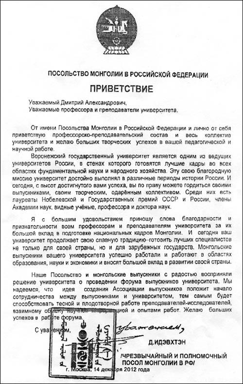 На адрес Ассоциации выпускников ВГУ продолжают идти благодарственные письма от выпускников университета.