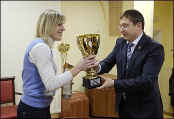 В начале заседания Д.А. Ендовицкий поздравил академика РАН, заведующего кафедрой материаловедения и индустрии наносистем ВГУ, профессора В.М. Иевлева с присуждением ему премии «Лидер года Воронежской области» в номинации «Наука». Ректор также поздравил университетскую общественность с победой команды ВГУ в Спартакиаде профессорско-преподавательского состава и сотрудников вузов Воронежской области, вручил председателю спортклуба ВГУ Елене Щегловой Почётную грамоту и кубки, выразил благодарность кафедре физического воспитания и спорта и её руководителю А.Э. Беланову за спортивные достижения.
