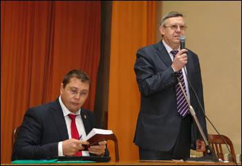 С приветственным словом к собравшимся обратился ректор ВГУ, профессор Д. Ендовицкий. В своем выступлении он говорил о некоторых проблемах развития высшей школы, о необходимости взаимовыгодного сотрудничества науки и бизнес-сообщества. Не остался в стороне и вопрос математического образования. Так, Д. Ендовицкий отметил, что математика и, в частности, методы математического моделирования, играют большую роль в создании самых разнообразных видов современной продукции. В то же время, наблюдается такая печальная тенденция: на математические факультеты поступают либо абитуриенты, которые действительно страстно хотят заниматься наукой, либо те ребята, которые хотят куда-нибудь поступить – неважно куда. Ректор также отметил, что с некоторых пор наблюдается явление «каннибальского поглощения» чистой математики со стороны смежных специальностей. В заключение, профессор Д. Ендовицкий выразил благодарность ученым старшего поколения, которые передают любовь к науке молодому поколению.