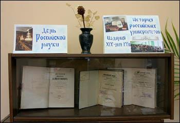 В отделе редких книг ВГУ открылась выставка «История Российских университетов. Издания XIX – нач. ХХ в.в», которая посвящена Дню Российской науки и предстоящему 95-летию Воронежского государственного университета.