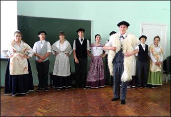 На встрече в ВГУ участники группы, возраст которых от 13 до 65 лет, продемонстрировали народные танцы, песни, игру на уникальных старинных инструментах, традиционных для предгорий Пиренеев, дух которых они передали так искренне, что казалось, будто все участники встречи на несколько минут перенеслись в очаровательную французскую деревушку, где юноши и девушки, взявшись за руки, танцуют древний, но всегда юный танец. Французские гости охотно рассказали о себе, ответили на вопросы, были очень приветливы и открыты. Гостеприимные хозяева тоже не остались в долгу: они подготовили маленький концерт, который вызвал оживленную реакцию французских гостей. Особенно понравилась третьеклассница Вика Самохина в русском национальном костюме в стиле «Гжель» с ее задорной песней «Валенки» и отрывок из мюзикла в исполнении восьмиклассников из гимназии им. И.С. Никитина. А студентка третьего курса французского отделения РГФ Анастасия Чаленко блеснула отличным вокалом. К тому же, ее песня оказалась любимой песней гостей, которые тут же подхватили припев.