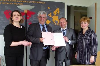 В Университете Новая Сорбонна Париж 3 (г. Париж) прошла встреча с вице-президентом по международным связям Эмманюэлем Фрэс и начальником отдела международных связей Лейлой Кернуа. В ходе встречи был подписан Протокол об обмене студентами как приложение к уже существующему Соглашению о сотрудничестве между нашими вузами. Французские коллеги выразили готовность сотрудничать по всем реализуемым в Университете Новая Сорбонна Париж 3 направлениям подготовки на уровне магистратуры, аспирантуры, проведения совместных научных исследований. Кроме того, в рамках договора о сотрудничестве заведующая кафедрой французской филологии Елена Алексеева приняла участие в государственной комиссии на выпускных квалификационных экзаменах в Высшей школе переводчиков (ЭЗИТ), которая является структурным подразделением Университета Новая Сорбонна Париж 3, в качестве члена комиссии.