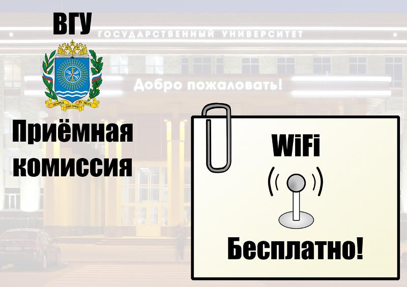 Специально для всех поступающих в наш университет открыт доступ к VSU-WLAN-guest – бесплатной сети Wi-Fi. Также в период ожидания подачи документов у вас есть возможность бесплатно выпить чашечку кофе или чая.