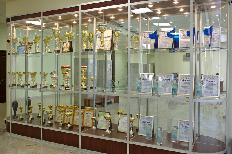 Фойе 2-го этажа главного корпуса ВГУ украсила новая витрина. Здесь выставлены кубки, медали, дипломы и почётные грамоты, завоёванные нашими студентами в ходе различных спортивных соревнований, на студенческих вёснах и других мероприятиях – в общей сложности, порядка 70 «трофеев».