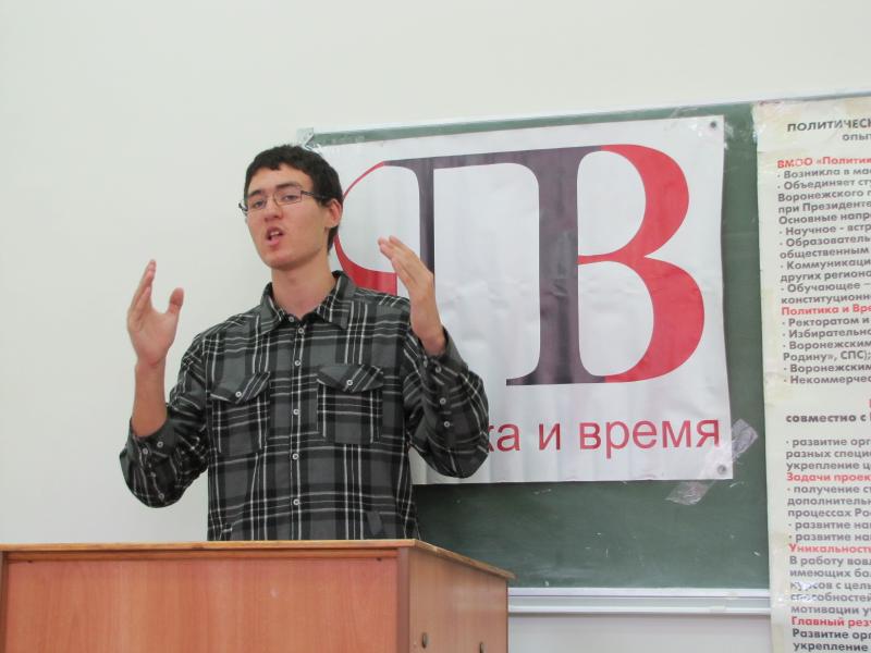 26 октября на историческом факультете ВГУ состоялись «выборы губернатора». По традиции, клуб «Политика и Время» организовал для первокурсников специальности «Политология» обучающую игру «Выборы губернатора». На первом этапе участники узнали от своих старших товарищей о системе органов государственной власти, о внесенных изменениях в избирательное законодательство России. Затем самые амбициозные получили возможность зарегистрироваться в качестве кандидатов и пройти все этапы избирательной кампании. «Кандидаты» боролись не только за поддержку избирателей, но и вынуждены были привлекать к себе внимание представителей средств массовой информации и крупного бизнеса: в аудитории работало «телевидение», присутствовали «иностранные наблюдатели». Кульминацией «избирательной кампании» стали дебаты кандидатов, которые позволили максимально четко увидеть сильные и слабые стороны каждого кандидата. В «день голосования» нарушений выявлено не было.