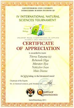 По окончании мероприятия всем участникам турнира были вручены сертификаты участника Международной научной школы «Applied Chemistry and Materials Science» и Международного турнира естественных наук.