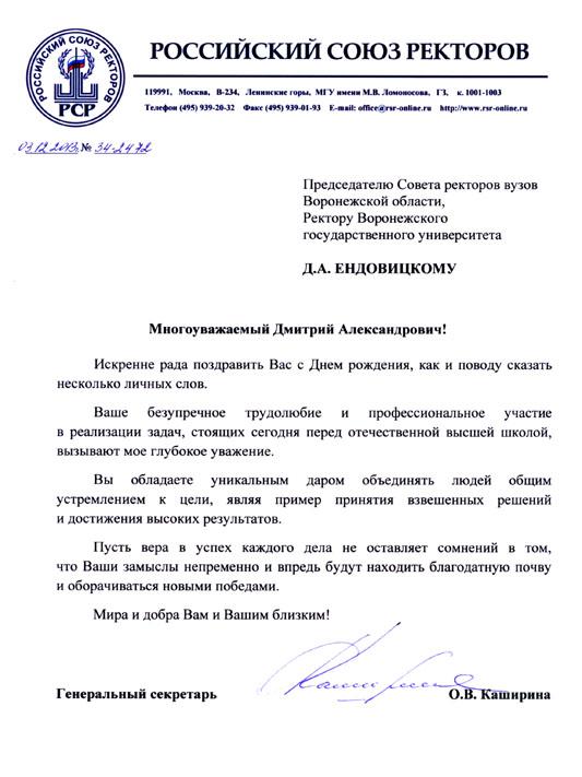 В этот знаменательный день главу университета поздравили многочисленные коллеги, друзья, представители коллектива университета. В частности, на имя ректора было получено поздравление от генерального секретаря Российского Союза ректоров Ольги Кашириной.
