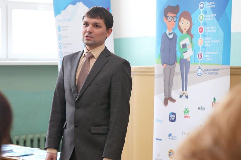 Презентация компании «Проктер энд Гембел», представленная Юлией Асташовой вызвала большой интерес у выпускников. Так, например, выяснилось, что присутствующие в зале студенты и выпускники много знают о работе компании. За правильные ответы они получили ценные подарки, которые вручал менеджер компании Дмитрий Никитин.