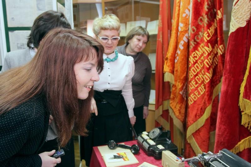 Собравшихся (тех, кто ещё не видел) ожидал небольшой сюрприз – в Музее книги оборудована экспозиция, которая рассказывает о нелёгком труде журналистов. Здесь и старинные пишущие машинки, антикварный телефон, стереофонический плеер-диктофон и даже большой графин для заседаний. За это большое спасибо Анжелике Макаровой – руководителю клуба «Слово и образ», методисту университетской библиотеки и нашему внештатному автору, а также художнику-реставратору Музея истории ВГУ Елене Звягиной.