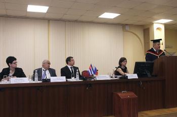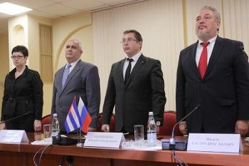 Сегодняшнее мероприятие стало одним из знаковых событий в жизни вуза. В конференц-зале университета собрались деканы факультетов, ректорат, сотрудники, присутствовал также Чрезвычайный и Полномочный Посол Республики Куба в Российской Федерации Эмилио Ратмир Лосада Гарсиа.