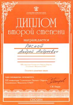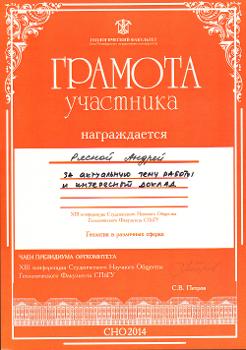 Выступление нашего студента было удостоено высокой оценки жюри: его наградили дипломом второй степени, а также грамотой за актуальную тему работы и интересный доклад.