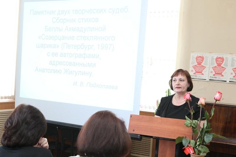 Собравшиеся также услышали доклады об автобиографической книге Юрия Никулина «Почти серьезно...» с дарственной надписью автора поэту-пародисту Александру Иванову, сборнике стихов Беллы Ахмадулиной «Созерцание стеклянного шарика» с ее автографами, адресованными поэту Анатолию Жигулину, а также об экземпляре «Стихов о России» Александра Блока с экслибрисами Александра Куренкова, Александра Леонтьева и других.