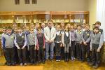 Владимир Стогниенко рассказал собравшимся о навыках и знаниях, которыми должен обладать спортивный комментатор, о тонкостях профессии, показал презентацию и отрывки видеозаписей футбольных матчей, на примере которых продемонстрировал специфику своей работы.