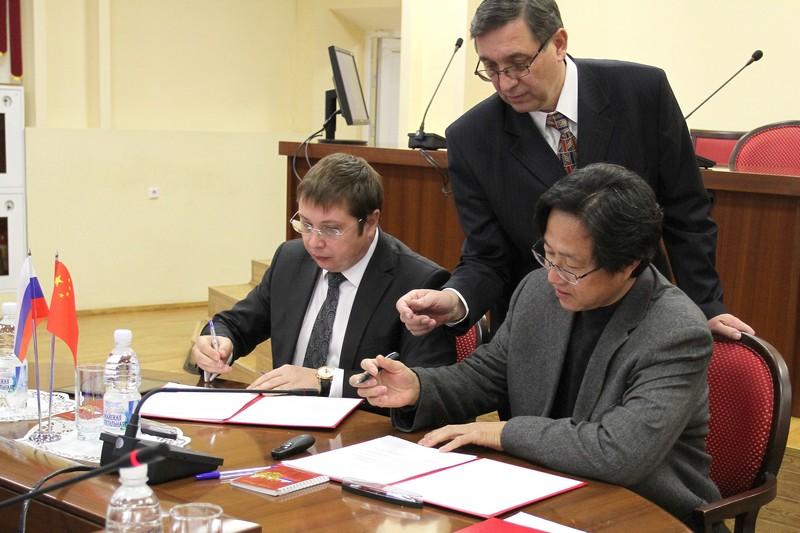 27 октября ректор Воронежского государственного университета Дмитрий Ендовицкий подписал соглашение о сотрудничестве с Ляонинской академией государственной службы (КНР). В состав китайской делегации вошли заместитель директора образовательного отдела по кадрам Организационного управления Партийного комитета провинции Ляонин Чжан Миндо, ректор Ляонинской академии государственной службы Вань Цзюньшу, начальник образовательного отдела по подготовке кадров Управления гражданской службы провинции Ляонин Суй Ин, начальник отдела кадров Управления по международным делам провинции Ляонин Ван Мэйфан.