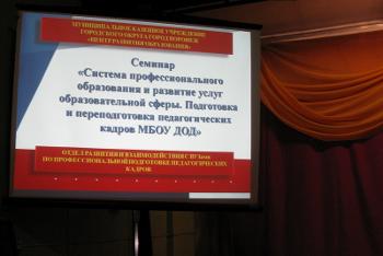 18 ноября в воронежском городском Дворце творчества детей и молодёжи прошёл семинар «Система профессионального образования и развитие услуг образовательной сферы. Подготовка и переподготовка педагогических кадров МБОУ ДОД».