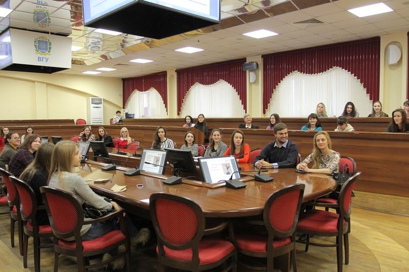 27 ноября в конференц-зале Главного учебного корпуса Воронежского государственного университета состоялась встреча студентов и руководства вуза с директором по региональной рекламе ЗАО «Аргументы и факты» (г. Москва), председателем правления АНО «Центр маркетинговых исследований и коммуникаций», советником по взаимодействию СМИ с органами власти Николаем Терещенко и генеральным директором «АиФ-Черноземье» и «АиФ. ТВ Гид» Александром Головиным.