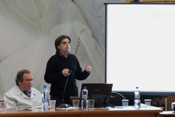 Зав. кафедрой цифровых технологий ФКН ВГУ, директор ИДПО Сергей Кургалин в своём докладе рассказал о достижениях лаборатории медицинской кибернетики кафедры, возможности их использования в практической медицине и о перспективах развития сотрудничества ВГУ–ВГМА–БСМП. Ассистент кафедры цифровых технологий факультета компьютерных наук ВГУ Алексей Максимов и аспирант кафедры неврологии ВГМА Павел Чурсин представили материал о разработанном на ФКН ВГУ новом интерфейсе человек–компьютер и об опыте его применения в неврологическом отделении БСМП для оценки когнитивного состояния больных с ишемическим инсультом.