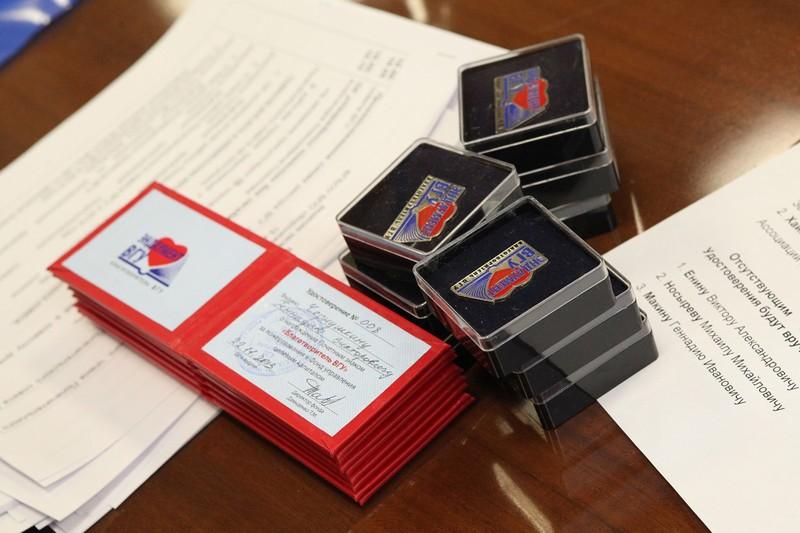 В завершение заседания членам Попечительского совета были вручены удостоверения и почетный знак «Почетный благотворитель ВГУ» за особый вклад в Эндаумент-фонд университета.