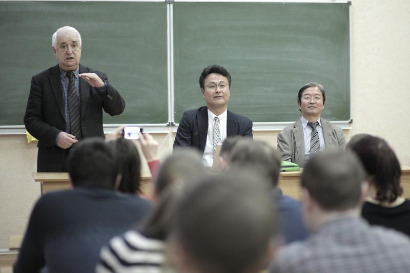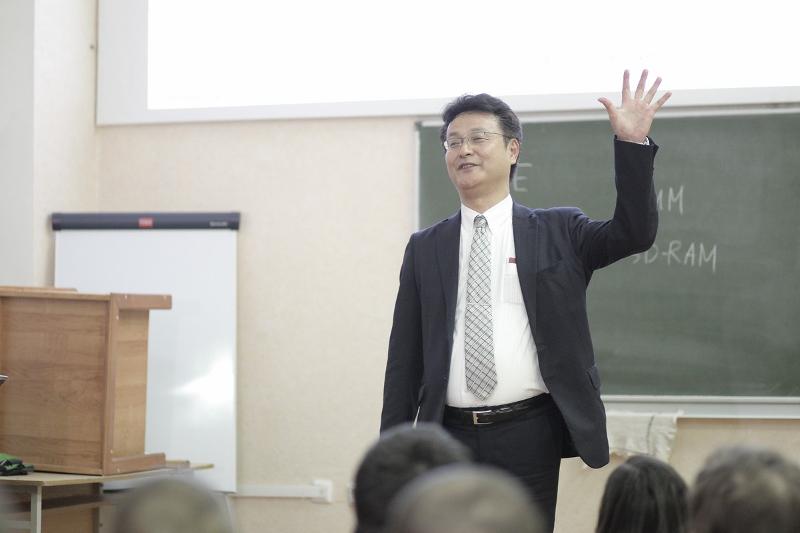 После этого в аудитории 479 факультета компьютерных наук ВГУ состоялась открытая лекция директора компании OTSL Inc. Takayuki Maruyama на тему «Современная культура Японии и автомобильная индустрия. OTSL как лидер автомобильной индустрии Японии». Это лекция стала пятой, организованной в рамках сотрудничества между ФКН ВГУ и компаниями DSR Corporation и OTSL Inc. Собравшиеся узнали об истории и современной культуре Японии (высокие технологии, японская кухня, аниме и т.п.), об автомобильной индустрии Японии, о деятельности компании OTSL, а также о задачах и перспективах сотрудничества компании OTSL с ВГУ в рамках Центра обучения технологиям программного обеспечения встроенных систем.