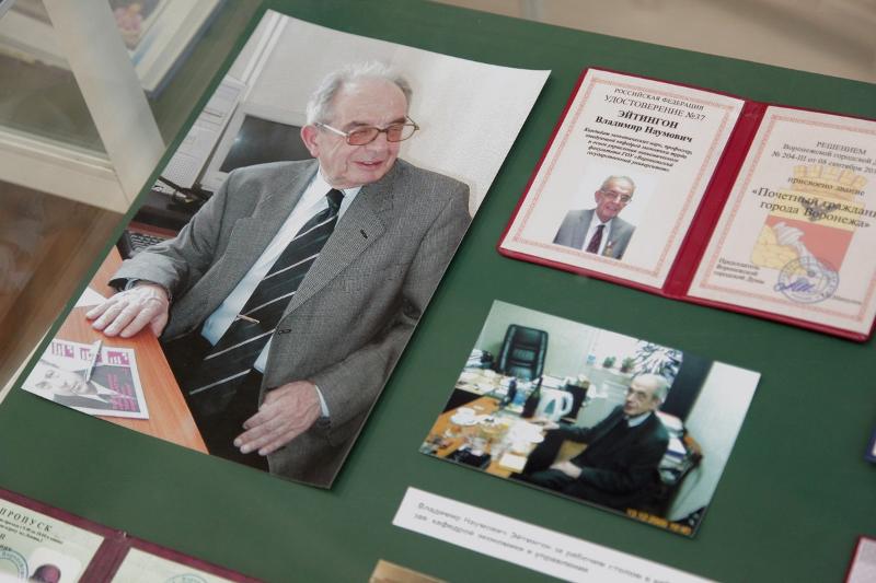 14 апреля в Музее истории Воронежского государственного университета открылась выставка, посвященная памяти ушедшего от нас год назад Владимира Наумовича Эйтингона – профессора экономического факультета ВГУ, заслуженного экономиста РФ, Почетного гражданина города Воронежа.