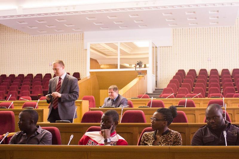 24 апреля лидеры землячеств иностранных студентов Воронежского государственного университета, а также члены футбольной команды Института международного образования ВГУ по приглашению депутата Александра Кучеренко побывали на экскурсии в Воронежской областной Думе.