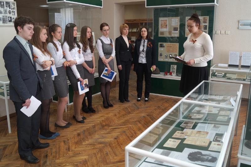 Одиннадцатиклассники Анна Конивец, Михаил Овчинников, Евгений Чернышев под руководством учителя истории и обществознания МБОУ гимназии имени И.А. Бунина Валентины Бочаровой совместно с отделом довузовского образования ВГУ, Зональной научной библиотекой, Музеем истории ВГУ представили экспозицию и рассказали о своих близких-участниках Великой Отечественной войны. За свою работу, хранящую память о тех годах школьники получили сертификаты и благодарственные письма от руководства вуза.