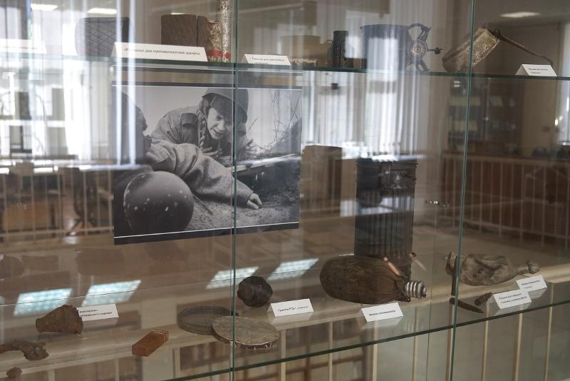 Тема войны и Победы отражена в военной графике, копиях живописных полотен тех лет, в выставке книг из фондов Зональной научной библиотеки ВГУ, а также в красочных альбомах карикатур Кукрыниксов.