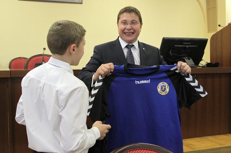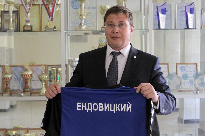После этого ректор ВГУ и куратор проекта, председатель НОУ ВГУ Михаил Фролов вручили новую спортивную форму с логотипом Воронежского госуниверситета тренерам и игрокам, а капитан сборной «ВГУ-юниор» Владимир Немцев в свою очередь подарил от имени команды Дмитрию Ендовицкому именную форму и гандбольный мяч с подписями всех игроков.