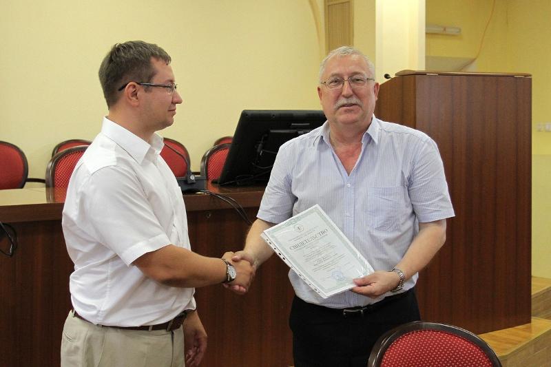 В завершение заседания Вячеслав Шамарин вручил представителям математического факультета и факультета журналистики свидетельства о профессионально-общественной аккредитации программ СПО. Напомним, что процедуру аккредитации также прошли программы СПО «Фармация» (фармацевтический факультет) и «Туризм» (факультет географии, геоэкологии и туризма).