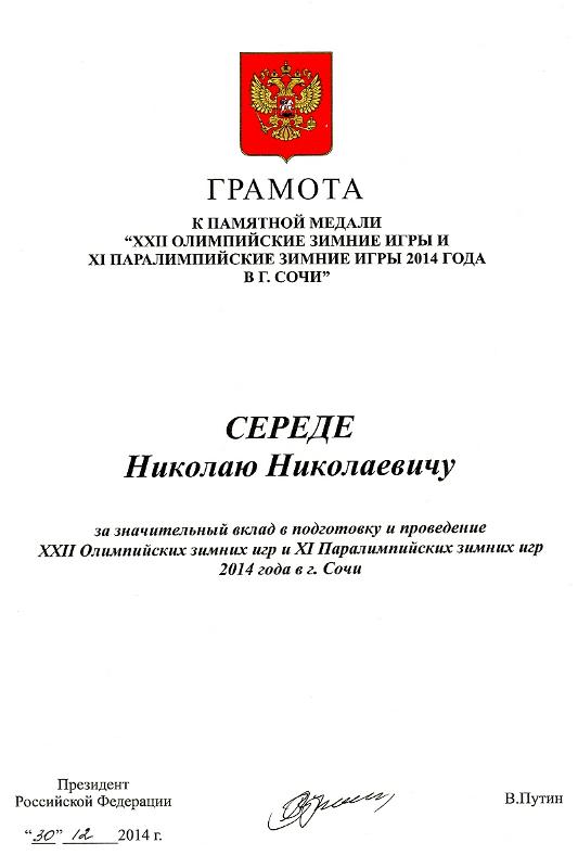 7 июля в рамках форума выпускнику факультета прикладной математики, информатики и механики ВГУ Николаю Середе и выпускнику экономического факультета ВГУ Павлу Коровину были торжественно вручены благодарственные грамоты и памятные медали Президента Российской Федерации Владимира Путина «За значительный вклад в подготовку и проведение XXII Олимпийских игр и XI Паралимпийских зимних игр 2014 года в городе Сочи».