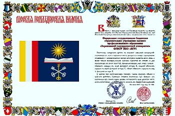 Воронежский государственный университет получил свидетельства о регистрации новой геральдической символики вуза Воронежской геральдической коллегией, а также грамоты о внесении нового герба и флага ВГУ в Гербовый Матрикул Русской геральдической коллегии. Также ректору ВГУ, профессору Дмитрию Ендовицкому был вручен штандарт ректора. Данные свидетельства подтверждают официальное признание новой символики ВГУ.