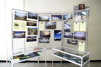 В экспозиции представлены живописные фотографии горных пейзажей участника экспедиции Дмитрия Чернова и то, без чего не сможет обойтись ни один человек, отправляющийся в горы, – ледорубы, кошки, очки.