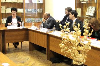 Встречу предваряло заседание рабочей группы, в состав которой вошли представители НИУ «Высшая школа экономики» – профессор факультета бизнеса и менеджмента Азер Эфендиев, преподаватель факультета социальных наук Александр Калгин, научный сотрудник Института анализа предприятий и рынков Израэл Маркес, а также первый проректор – проректор по учебной работе ВГУ Елена Чупандина, преподаватели и сотрудники университета. Они обсуждали проекты, по которым будет вестись дальнейшее сотрудничество ВШЭ и ВГУ, основные направления возможных совместных исследований, рабочие моменты.