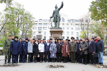 Череду торжественных мероприятий открыло возложение цветов к памятнику Петру I в сквере, который носит имя царя-реформатора. В церемонии приняли участие Антонина Пикуль, дочь писателя Марина Пикуль, председатель Общероссийского Движения Поддержки Флота, капитан первого ранга запаса, член правления Воронежского землячества в Москве Михаил Ненашев, адмирал, заместитель Главнокомандующего ВМФ России в 1991-1999 годах Иван Васильев, а также курсанты и преподаватели факультета военного образования ВГУ и Военно-воздушной академии имени Н.Е. Жуковского и Ю.А. Гагарина.