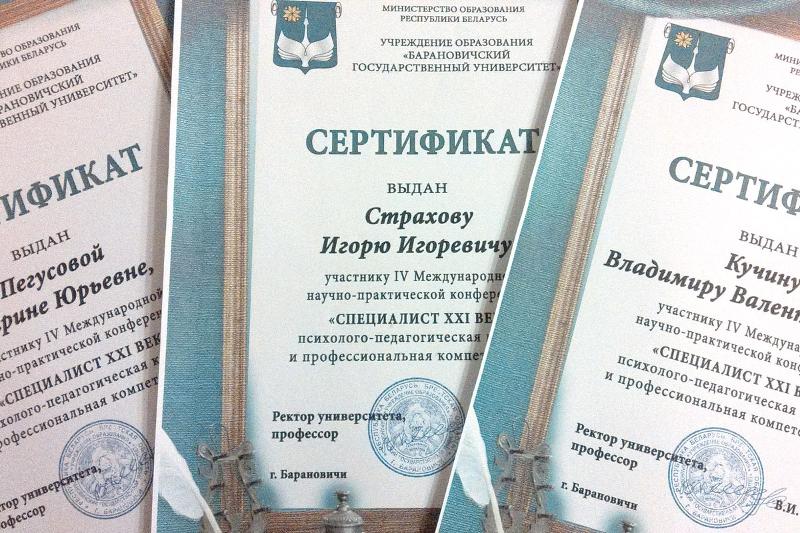 Студенты третьего курса филологического факультета Воронежского государственного университета Владимир Кучин и Марина Пегусова, а также аспирант кафедры славянской филологии Игорь Страхов приняли участие в IV Международной научно-практической конференции «Специалист XXI века: психолого-педагогическая культура и профессиональная компетентность», прошедшей 22 октября в городе Барановичи.